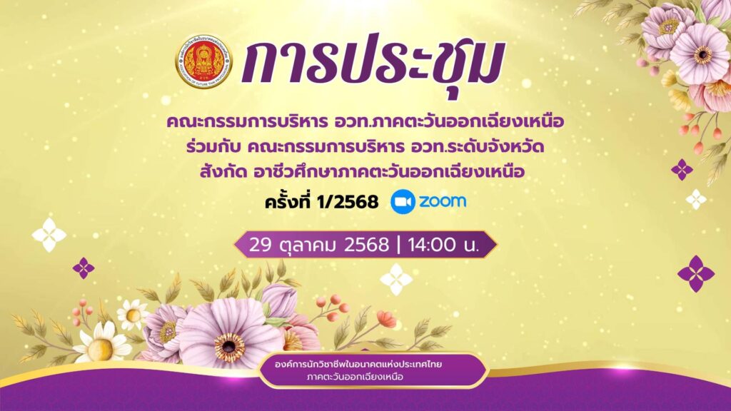 วันที่ 29 ตุลาคม 2568 ประชุมคณะกรรมการบริหารองค์การ ระดับจังหวัด ในสังกัดอาชีวศึกษาภาคตะวันออกเฉียงเหนือ ร่วมกับคณะกรรมการบริหารองค์การ ภาคตะวันออกเฉียงเหนือ ผ่านระบบออนไลน์