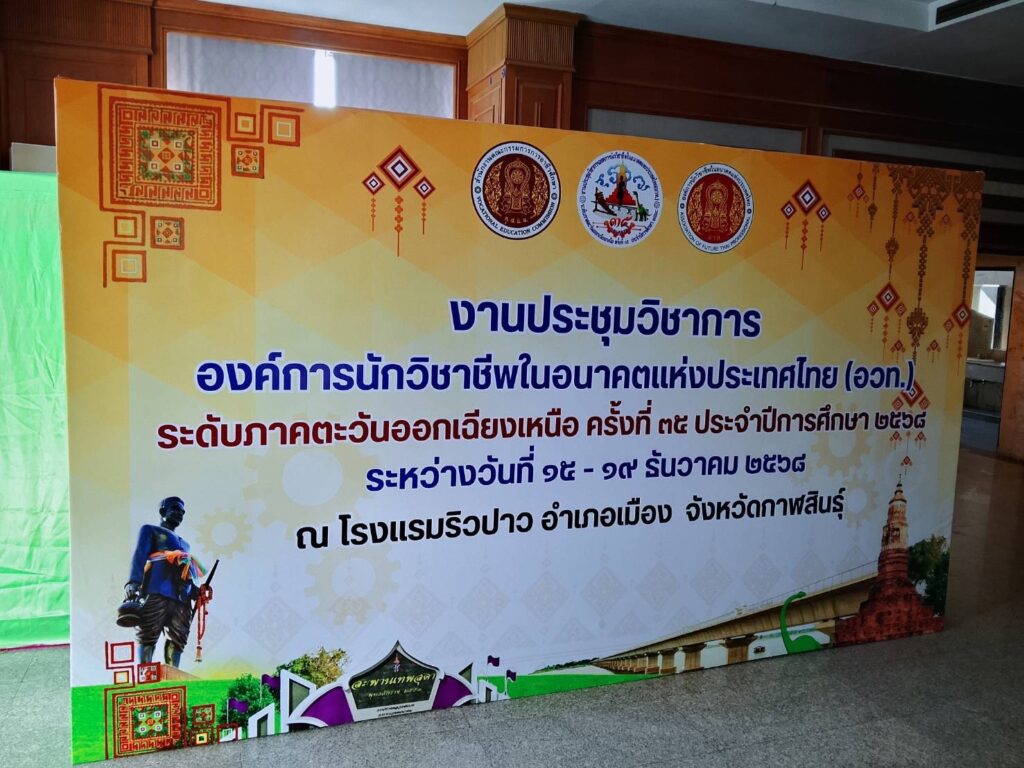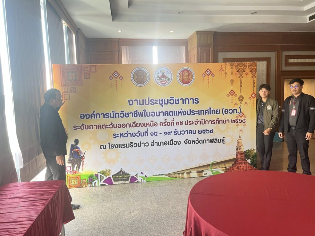 วันที่ 9 ธันวาคม 2568 เข้าดูพื้นที่จัดป้ายงาน เตรียมงานประชุมทางวิชาการองค์การวิชาชีพในอนาคตแห่งประเทศไทย ระดับภาคตะวันออกเฉียงเหนือ ครั้งที่ 35 ณ โรงแรมริมปาว จังหวัดกาฬสินธุ์